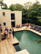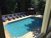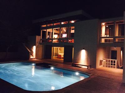 | Massive sunny pool deck, large open living and dining room with high ceilings and windows on all four sides complete with wood burning f/p. Fantastic kitchen with windows. Large two room master suite incl den, Total 4 a/c bedrooms, 4 baths. Hot tub, outdoor shower, 32 foot pool with LED lighting. Open air pool-side lanai.